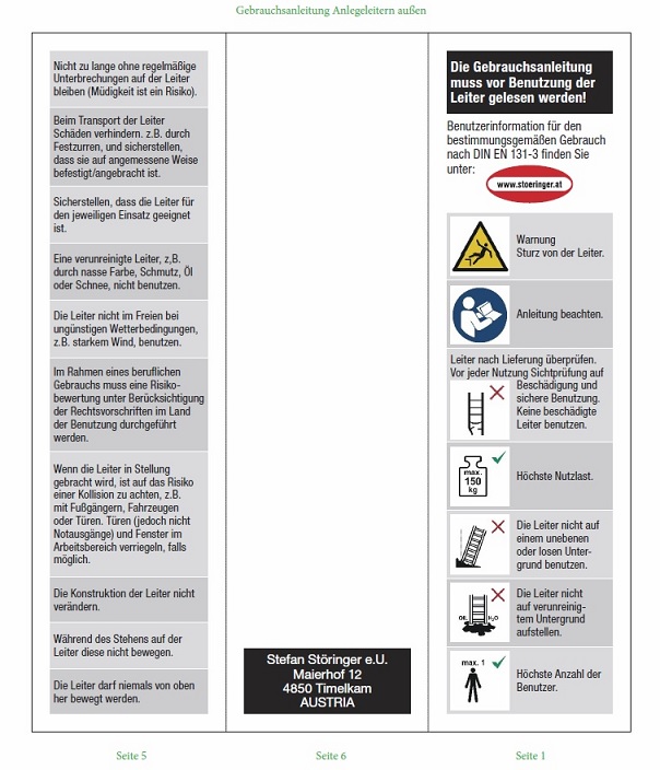 Gebrauchsanleitung Anlegeleiter: