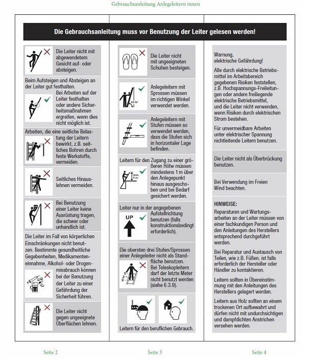 Alkohol- oder Drogenmissbrauch können bei der Benutzung der Leiter zu einer Gefährdung der Sicherheit führen;