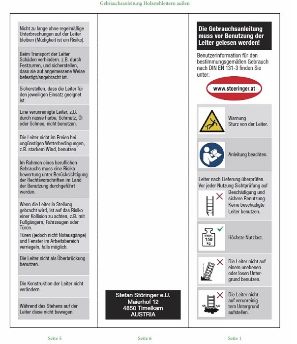 Gebrauchsanleitung Holzstehleiter: